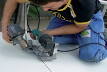 轻巧的热风焊接设备,即使在陡峭的屋顶上都能保持恒定的焊接速度。