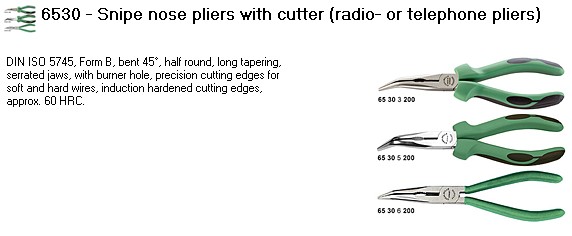 6530 带切刀机工鹬鼻钳(收音机或电话钳)